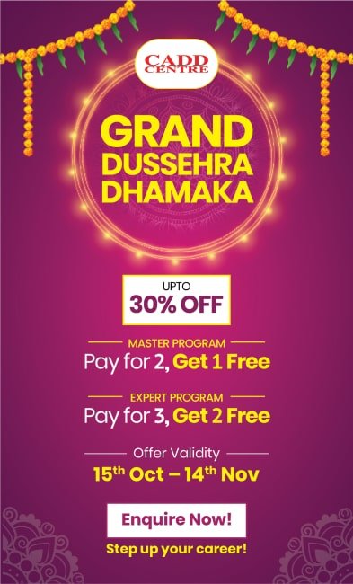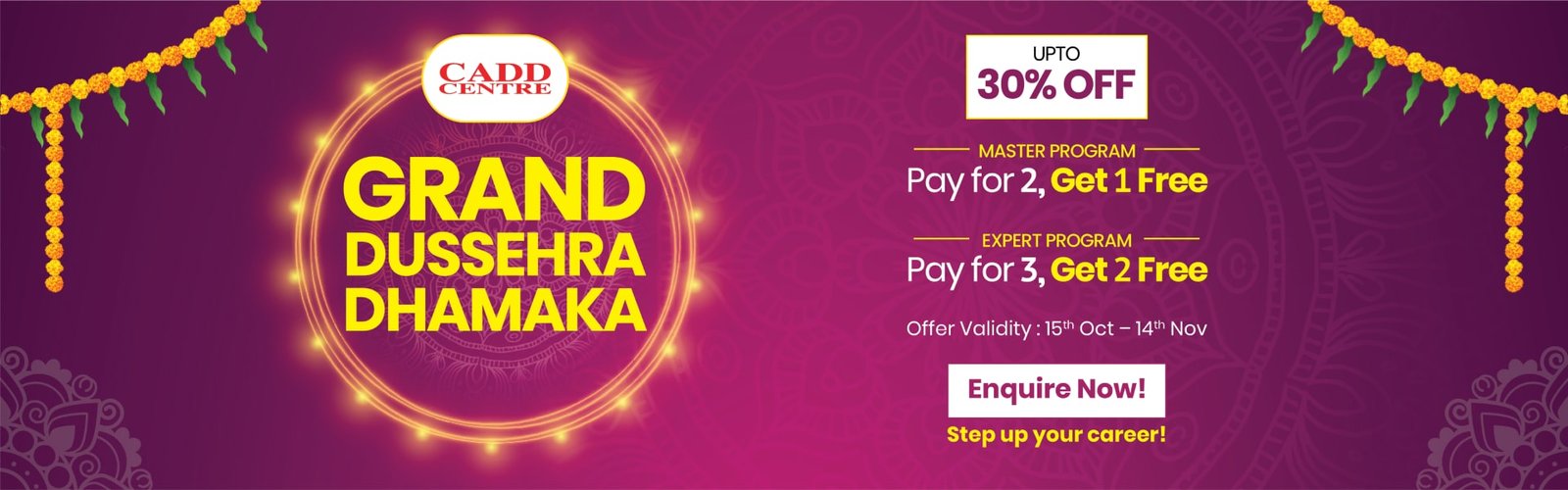 Here's an exciting opportunity to elevate your skills while enjoying significant savings. Introducing the Grand Dussehra Dhamaka by CADD Centre, a festive celebration of learning and saving!
